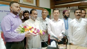 শপথ বাক্য পাঠ শেষে নবনির্বাচিত চেয়ারম্যানকে ফুল দিয়ে বরণ করেন জেলা প্রশাসক।