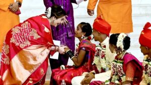 ভারতীয় গণমাধ্যমগুলো জানাচ্ছে, মুকেশ ও নীতা আম্বানি নিজে উপস্থিত থেকেই সবাইকে বিয়ে দিয়েছেন। তাদের সঙ্গে আকাশ ও শ্লোকাও উপস্থিত ছিলেন। ছিলেন ইশা আম্বানি ও আনন্দ পিরামলও। প্রত্যেক নবদম্পতিকে স্বর্ণের গয়না উপহার দেয়া হয়। যার মধ্যে ছিল মঙ্গলসূত্র, বিয়ের আংটি, নথ। এমনকি রুপোর নুপূর, চুটকিও উপহার পান তারা। এছাড়াও সব নববধূর হাতে এক লাখ এক টাকার ‘স্ত্রীধন তুলে দেয়া হয়েছে।
